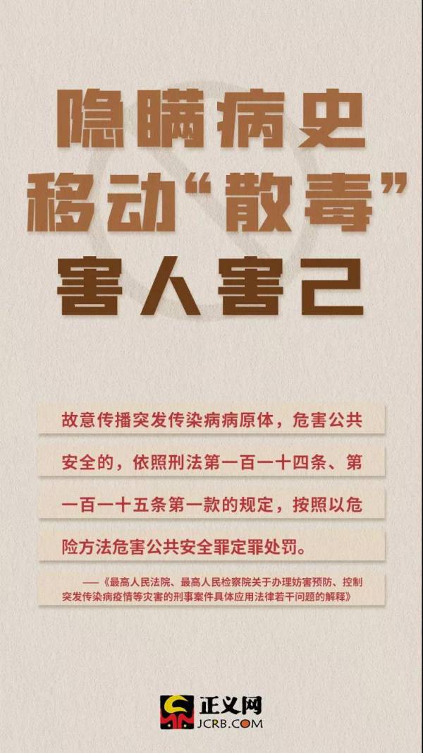 隱瞞病史,移動“散毒”,按以危險方法危害公共安全罪定罪處罰,最高會被判死刑;暴力抗檢,拒不隔離,按過失以危險方法危害公共安全罪定罪處罰……疫情防控,有法可依!9張海報中,全是法律干貨,請務必熟悉。