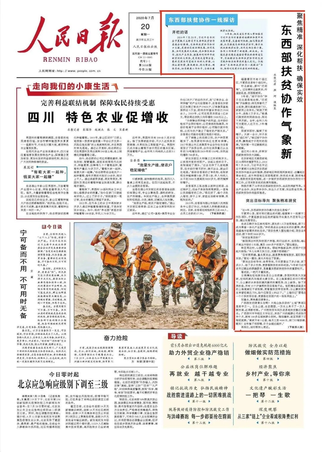 2020-07-20 11:58:48 來源:7月20日人民日報 責任編輯:陳瑋 作者:顏珂 侯琳良7月20日人民日報頭版刊登報道《東西部扶貧協作氣象新》,點贊閩寧協作有實效。