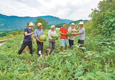 不愿意放棄的扶貧工作隊員,決心帶頭做出個樣子來。當年,2畝西瓜,畝產達6000斤,銷售收入2萬余元??吹阶孀孑呡叿N玉米的土地真的種出了大西瓜,村民們紛紛跟進種植。今年,40余戶村民自愿種植上百畝西瓜,雖受雨水影響,但預計畝產仍達到5000斤以上,戶均增收能達上萬元。