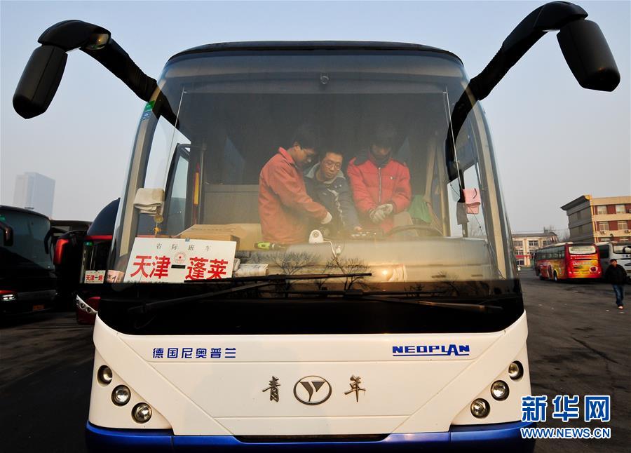 2013年1月18日,天津市交通集團的工作人員在為長途客車安裝“北斗”導航終端。 新華社記者 張超群 攝