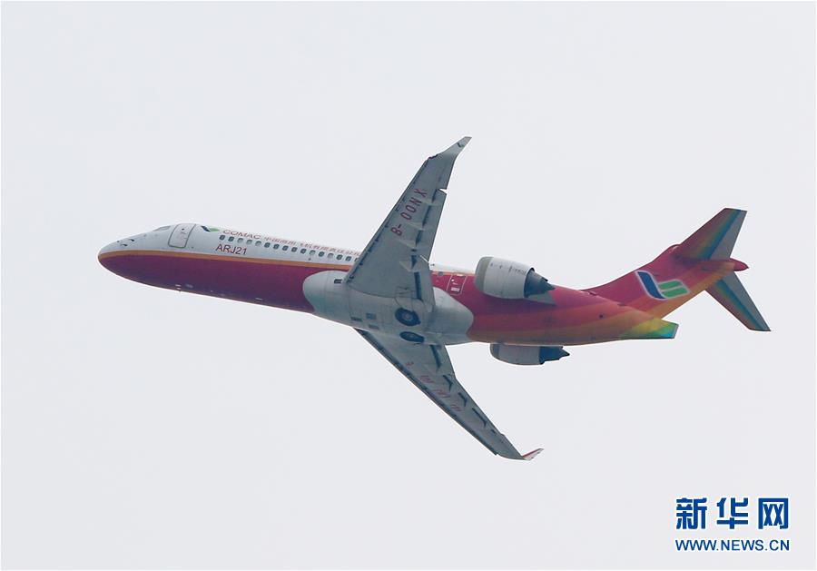 在山東東營勝利機場,我國自主研發的北斗衛星導航系統首次在中國完全自主設計并制造的支線客機——ARJ21-700飛機103架機上進行測試試飛(2017年10月14日攝)。 新華社記者 丁汀 攝