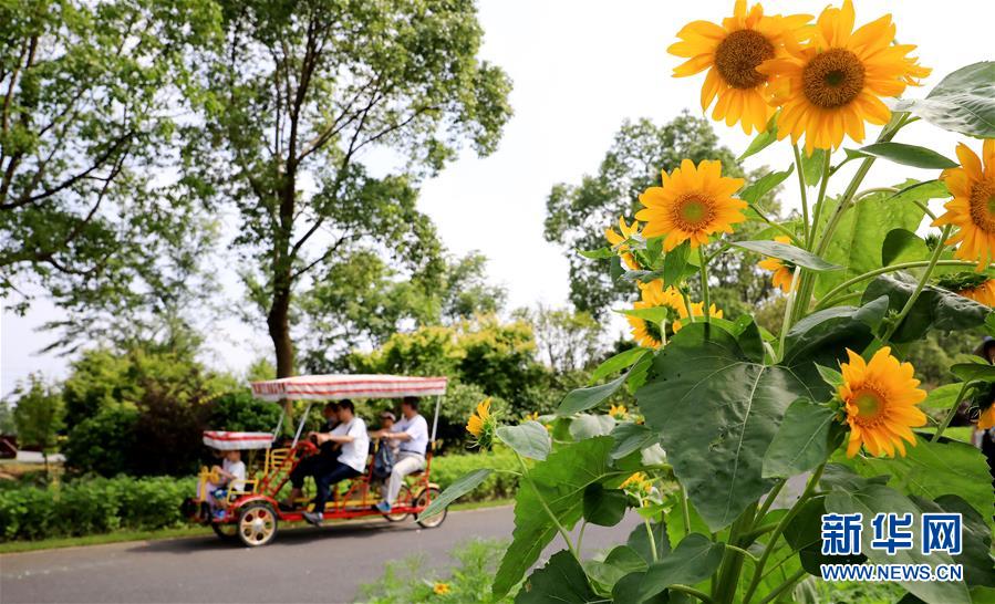 游客在上海市金山區的花開海上生態園游玩(6月26日攝)。新華社記者 方喆 攝
