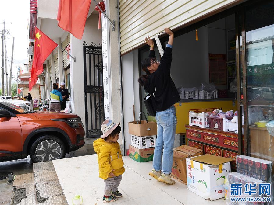 格桑旺姆推開蔬菜店的卷閘門準備營業。
