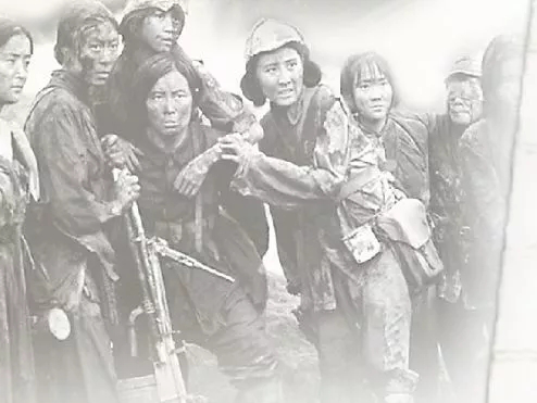 1938年10月,以冷云為首的東北抗日聯軍8名女官兵與日偽軍戰至彈盡后英勇殉國。圖為八女投江。(影視作品畫面) 面對敵人圍困 八位女戰士高唱“奴隸們起來”的國際歌 挽臂沉江殉國