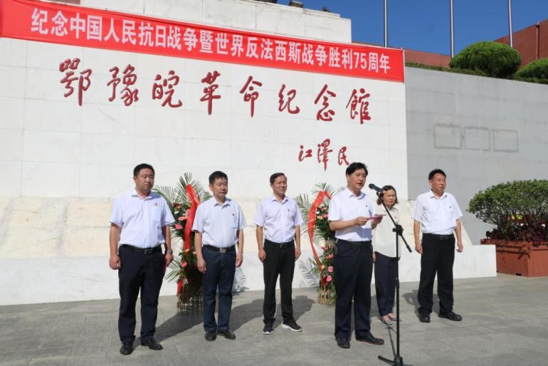 鄂豫皖革命紀念館工作人員在紀念館廣場莊嚴舉行升國旗、唱國歌儀式,并向抗戰先烈敬獻花籃。同時,還依托館藏革命文物,講述紅色故事,重溫艱辛光輝的抗戰史。