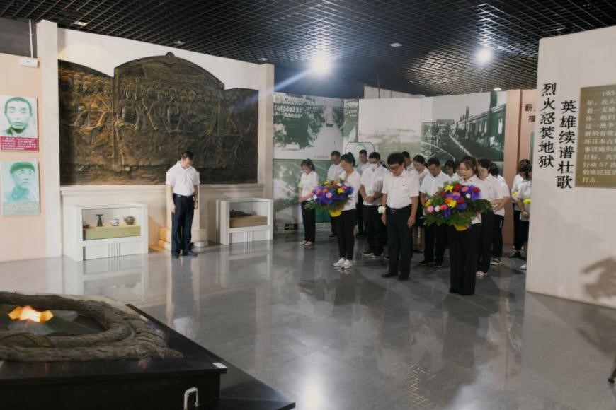 湖南黨史陳列館全體工作人員及社會各界代表集體手捧鮮花,為抗戰英烈進行默哀,以此表達對抗日英雄的哀思,并在英烈雕塑前鞠躬致敬。