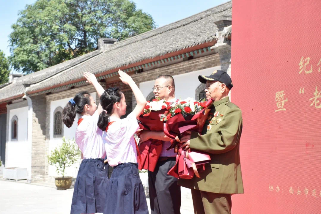 八路軍西安辦事處紀念館邀請抗戰老兵及老兵后代參加紀念儀式。育英小學周恩來班的少年先鋒隊員為老兵獻花,表達了對抗戰老兵最崇高的敬意,感謝他們為國家、為民族解放、為抗戰勝利所作出的巨大貢獻。