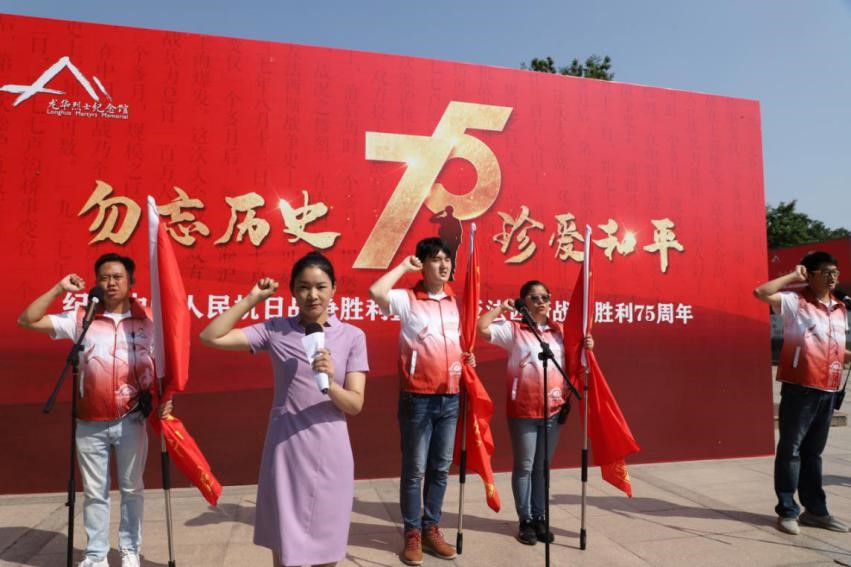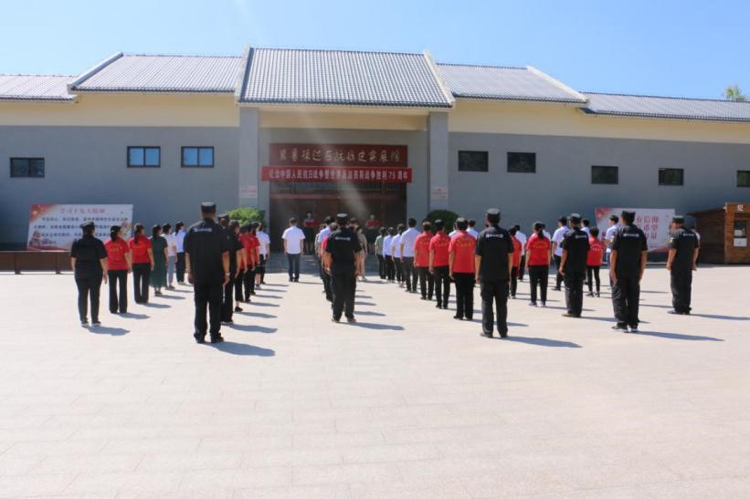 中國人民抗日軍政大學陳列館組織全體工作人員向為抵抗外辱、追求民族獨立解放和共和國建設事業中英勇獻身的英雄致敬,紀念館講解員為全體人員講述為抗日戰爭勝利而獻出寶貴生命的靳惠民、孫保德等抗大學員及人民群眾的英勇事跡;并朗誦抗戰詩歌《抗大母親》,表演舞蹈《十送紅軍》。