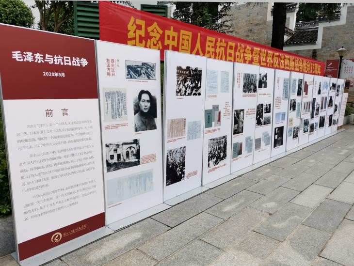 韶山毛澤東同志紀念館舉辦“紀念中國人民抗日戰爭暨世界反法西斯戰爭勝利75周年”主題紅色故事講解大賽,深入挖掘紅色資源,努力擔當起愛國主義教育的文化傳承使命,并推出“毛澤東與抗日戰爭”主題戶外展覽,以毛澤東帶領中國共產黨人奪取抗戰勝利的歷程為主線,真實地再現了抗日戰爭的崢嶸歲月。