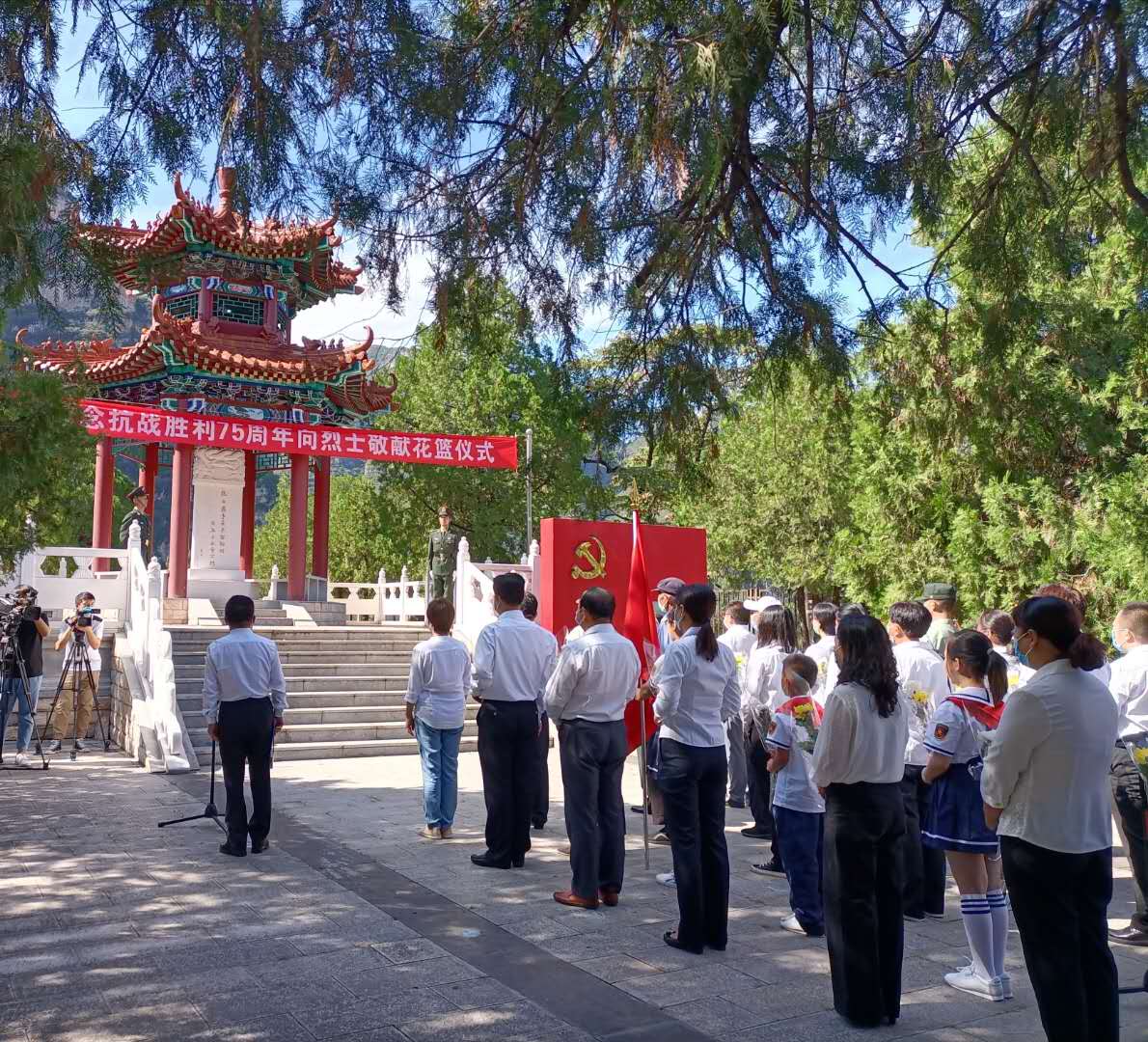 平西抗日戰爭紀念館組織部分黨政領導、烈屬代表、團員青年及學生代表60余人同聲高唱中華人民共和國國歌,并在平西抗日烈士紀念碑前默哀,全體人員有序向烈士敬獻鮮花、瞻仰紀念碑,表達崇敬之情。