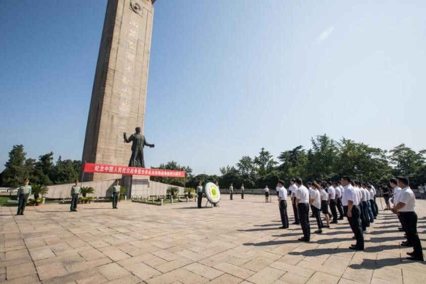 武漢革命博物館舉辦“銘記歷史 珍愛和平”紀念活動。紀念館的小小講解員以云上詩歌朗誦的形式,在線上向抗戰先烈致以崇高的敬意,職工代表向革命烈士敬獻花籃,鞠躬默哀。