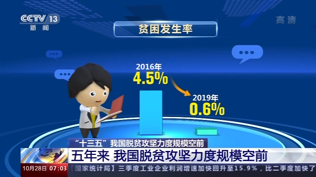 2016年至2019年,超過5000萬農村貧困人口擺脫絕對貧困,平均每年減貧1000萬人以上。貧困發生率從2016年的4.5%下降至2019年的0.6%,區域性整體貧困基本得到解決。 “十三五”時期,全國建檔立卡貧困人口人均純收入由2016年的4124元增加到2019年的9057元,年均增幅30%,很多農村老百姓生活有了質的飛躍。