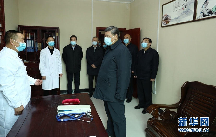 今年2月10日下午,總書記來到北京地壇醫院,察看新冠肺炎感染者住院診療情況,通過視頻連線武漢市新冠肺炎患者收治醫院,聽取中央指導組、湖北指揮部有關情況匯報,慰問奮戰在一線的醫務工作者。