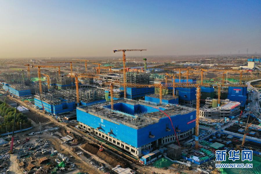 這是11月6日拍攝的河北雄安新區商務服務中心建設現場(無人機照片)。新華社記者 牟宇 攝