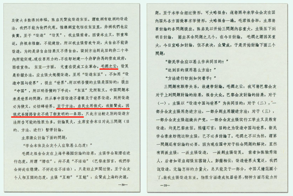 1918年4月,毛澤東、蔡和森、蕭子升、何叔衡等13人在蔡和森家成立新民學會。學會以“革新學術,砥礪品行,改良人心風俗”為宗旨。要求會員不虛偽、不懶惰、不浪費、不賭博、不狎妓。從1918年創立到1921年中國共產黨建立,新民學會活動了三年多時間,前后大約有80多名會員。這些人中的大部分后來都走上了革命道路。這是新民學會成立大會舊址。 毛澤東在發言中說:我贊成用俄國式的革命道路,這是諸路皆走不通了新發明的一條路。他還比較了社會民主主義、無政府主義等方法,認為“激烈方法的共產主義,即所謂勞農主義,用階級專政的方法,是可以預計效果的,故最宜采用”。 把這篇發言作為《毛澤東文集》的開篇,是因為它標志著毛澤東選擇了馬克思列寧主義革命道路。實際上,在一個月前,毛澤東給在法國的新民學會會員蔡和森、蕭子升等寫了一封長信,信中專門用很大的篇幅討論了改造中國與世界的方法和目的問題。毛澤東在信中談到:蔡和森主張用俄國式革命的方法來改造中國,蕭子升等不贊同用俄式革命的方法,主張用溫和的革命、教育的方法。毛澤東明確表示:深切贊同蔡和森的主張,而不同意蕭子升等的主張,“我覺得用教育的方法是不行的。我看俄國式的革命,是無可如何的山窮水盡諸路皆走不通了的一個變計,并不是有更好的方法棄而不采,單要采這個恐怖的方法?!泵珴蓶|的這封信,后來作為開篇收入《毛澤東書信選集》。 “山窮水盡諸路皆走不通”,毛澤東用形象的十個字,概括了近代以來仁人志士探索民族復興之路苦澀的心路歷程。自1840年以來,救國尋路,民族復興,就成為近代中國的基本政治主題。 19世紀下半個世紀,中國人已經做過了多種嘗試:只搬用一些洋槍洋炮和近代工業技術的洋務運動救不了中國,上層士大夫曾希望依靠光緒皇帝的支持來進行改革的戊戌維新運動又失敗了,下層民眾自發掀起的義和團式的舊式反抗運動也失敗了,孫中山領導的資產階級革命也沒能改變中國的命運……