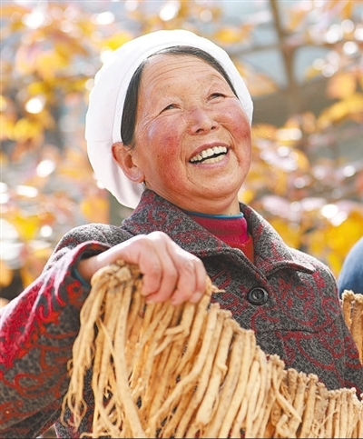 精準扶貧精準脫貧方略大力實施,脫貧攻堅取得重大勝利。圖為2020年11月6日,甘肅岷縣秦許鄉百花村村民收獲藥材,高興得合不攏嘴。該村通過發展扶貧產業,實現脫貧增收?! 垖W軍攝(影像中國)