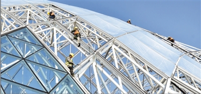 2月4日,“2021年揚州世界園藝博覽會”園區建設工地上,工人們正在緊張施工。完善基礎設施,聚焦功能升級,會展經濟提升城市競爭力,助推高質量發展?! ∏f文斌攝(影像中國)