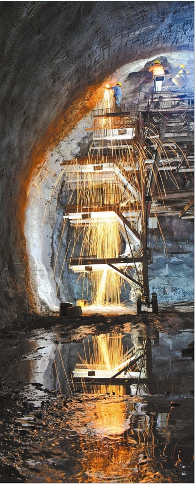 “十三五”以來,重大工程建設捷報連連,有效拉動投資,增添發展動力。圖為1月1日,杭溫高鐵浙江省臺州市仙居縣里齊隧道施工現場,工人加緊施工?! ⊥跞A斌攝(人民視覺)
