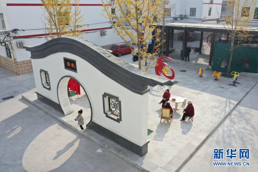 居民在河南省焦作市溫縣一處改造后的小區內休閑(2020年11月15日攝,無人機照片)。新華社發(徐宏星 攝)