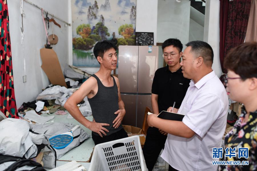 在浙江省衢州市衢江區杜澤鎮老街,服裝來料加工小微企業主周建斌(左一)向信貸人員介紹經營情況(2020年9月10日攝)。浙江省擔保集團有限公司推出多項服務,幫助解決小微企業和“三農”融資難融資貴問題。新華社記者 黃宗治 攝