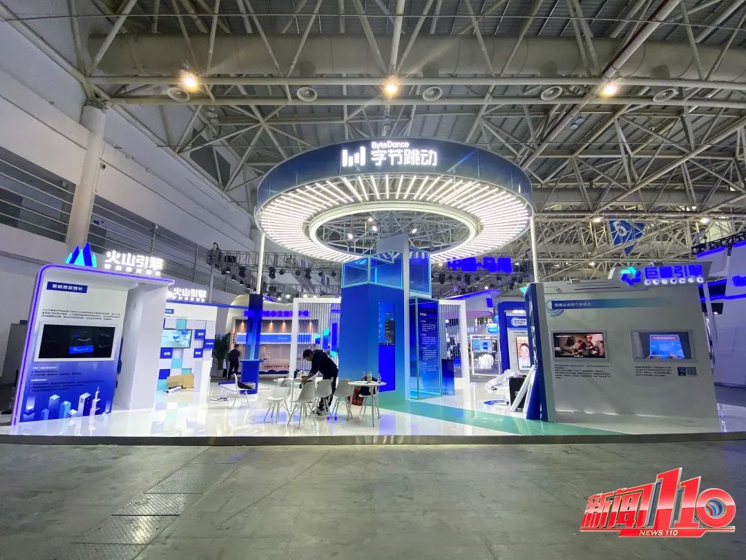 別看它外表呆萌 其實多才多藝 不但會唱歌跳舞 還能做展區“導游” 讓我們跟著它 一起開始逛展吧! 5號館 數字社會 主要展示在發展數字便民服務 優化數字生活方式體驗 這些方面的典型成果 字節跳動、騰訊、美圖 都在這個館