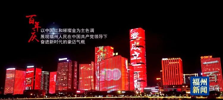 以中國紅和璀璨金為主色調,配合《沒有共產黨就沒有新中國》激情昂揚的旋律,“熱烈慶祝中國共產黨成立100周年”特效噴薄而出,展現福州人民在中國共產黨領導下奮進新時代的豪邁氣概。