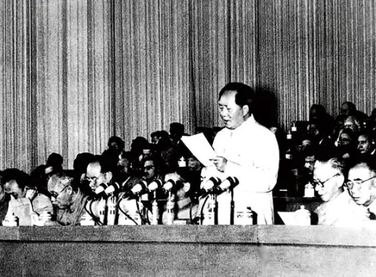 1956年9月15日至27日,中國共產黨第八次全國代表大會在北京舉行。大會提出的黨和國家主要任務是集中力量發展生產力的思想,對于社會主義事業的發展和黨的建設具有長遠的重要的意義。圖為毛澤東在大會上致開幕詞。新華社發