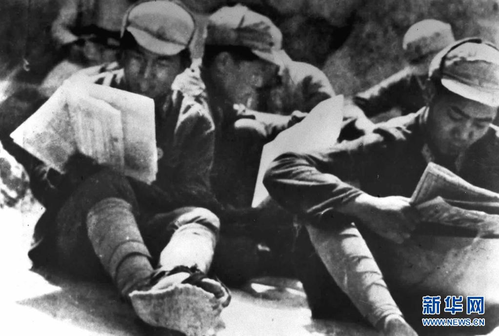 中國人民抗日軍政大學的學員在學習整風文件(資料照片)。新華社發