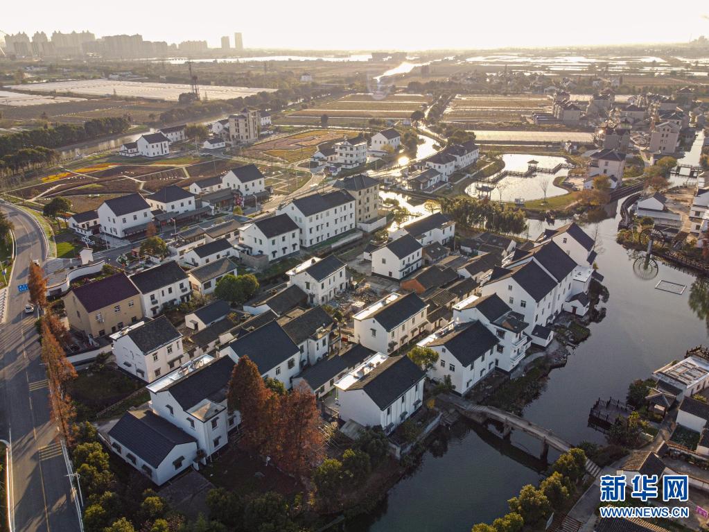 嘉興市秀洲區油車港鎮勝豐村景色(無人機照片,2020年12月15日攝)。新華社發(江漢 攝)