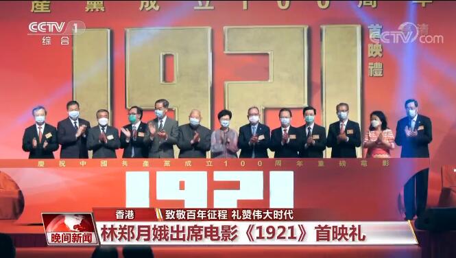 在香港,建黨100周年獻禮影片《1921》在7月4日首映,香港特區行政長官林鄭月娥出席首映禮。她表示,很高興能重溫中國共產黨百年偉業的重要篇章,她期望內地和香港電影界及其他創意產業的人士能為社會帶來更多富教育性、具正能量的作品。