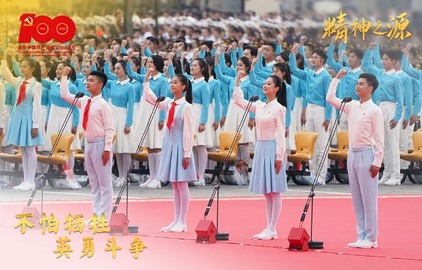2021年7月1日上午,慶祝中國共產黨成立100周年大會在北京天安門廣場隆重舉行。這是共青團員和少先隊員代表集體致獻詞。 實現中華民族偉大復興進入了不可逆轉的歷史進程,必須繼續發揚不怕犧牲、英勇斗爭精神。 “對一切為國家、為民族、為和平付出寶貴生命的人們,不管時代怎樣變化,我們都要永遠銘記他們的犧牲和奉獻?!秉h的十八大以來,習近平總書記緬懷英烈、致敬英雄的足跡遍布大江南北。 在總書記的推動下,我國以立法形式設立了烈士紀念日、中國人民抗日戰爭勝利紀念日和南京大屠殺死難者國家公祭日;2017年,我國確立了以“五章一簿”為主干的功勛榮譽表彰制度體系;2018年5月1日起,《中華人民共和國英雄烈士保護法》正式施行。 “危急時刻,又見遍地英雄”,面對來勢洶洶的新冠肺炎疫情,各條戰線的抗疫勇士臨危不懼、視死如歸,以生命赴使命、用大愛護眾生;“時代造就英雄,偉大來自平凡”,數百萬扶貧干部以熱血赴使命、以行動踐諾言,1800多名同志將生命定格在了脫貧攻堅征程上……正如習近平總書記所言:“平常時候看得出來、關鍵時刻站得出來、危難關頭豁得出來,每名黨員都能夠在民族復興的偉業中為黨和人民建功立業!” 中華民族是英雄輩出的民族,新時代是成就英雄的時代。新的征程上,我們必須繼續發揚不怕犧牲、英勇斗爭精神,深刻認識新形勢下的新矛盾新挑戰,不斷增強斗爭意識、豐富斗爭經驗、提升斗爭本領,敢于斗爭、善于斗爭,逢山開道、遇水架橋,勇于戰勝一切風險挑戰! |
