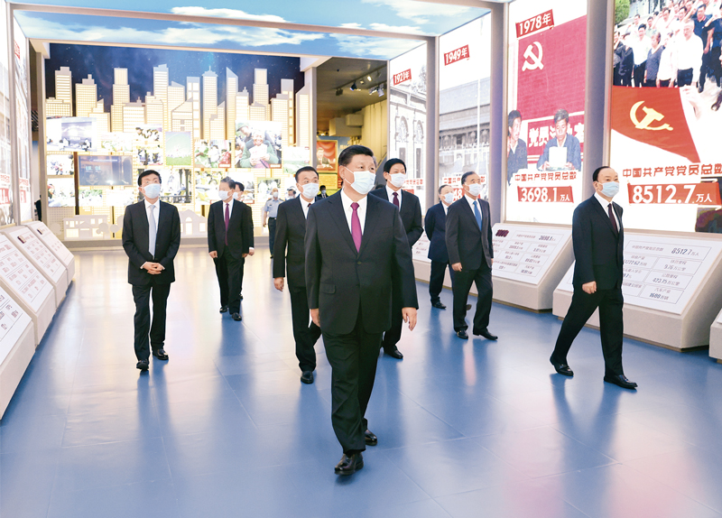 2021年6月18日,黨和國家領導人習近平、李克強、栗戰書、汪洋、王滬寧、趙樂際、韓正、王岐山等在中國共產黨歷史展覽館參觀“‘不忘初心、牢記使命’中國共產黨歷史展覽”?!⌒氯A社記者 鞠鵬/攝