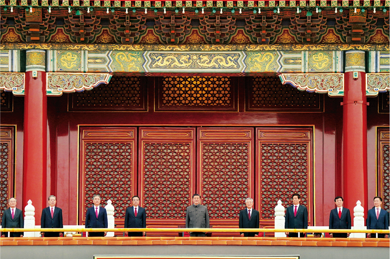 2021年7月1日,慶祝中國共產黨成立100周年大會在北京天安門廣場隆重舉行。習近平、李克強、栗戰書、汪洋、王滬寧、趙樂際、韓正、王岐山、胡錦濤等出席大會?!⌒氯A社記者 殷博古/攝