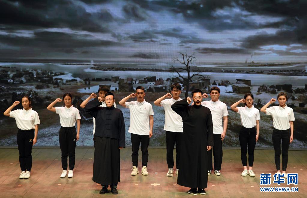 電視劇《覺醒年代》主創團隊走進北京大學,劇中主要演員與北大學生同臺演出(4月20日攝)。新華社記者 任超 攝