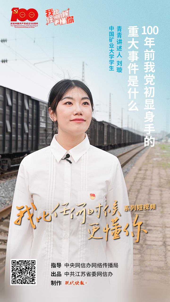 8 月 10 日," 我比任何時候更懂你 " 系列短視頻第 17 集《100 年前我黨初顯身手的重大事件是什么?》上線,本集青青講述人是中國礦業大學的碩士研究生劉璇。 位于鬧市區的隴海鐵路徐州西站貨場,一棟磚紅色的小樓佇立其中,風吹樹葉沙沙聲響,仿佛訴說著 100 年前,發生在這里風云激蕩的故事。