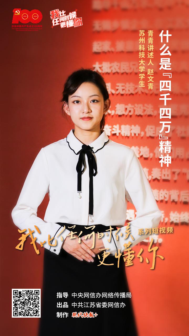 8 月 20 日," 我比任何時候更懂你 " 系列短視頻第 27 集《什么是 " 四千四萬 " 精神?》上線,本集青青講述人是蘇州科技大學學生趙文青。 從 " 創業小白 " 成為 " 行業大咖 " 的故事,大家都聽過不少,這樣的奇跡更是數不勝數。位于無錫的中國鄉鎮企業博物館里,展現了很多當年的 " 創客 " 白手起家的故事,在他們打拼過程中還蘊蓄出了一股共同的精氣神,那就是 " 四千四萬 " 精神。