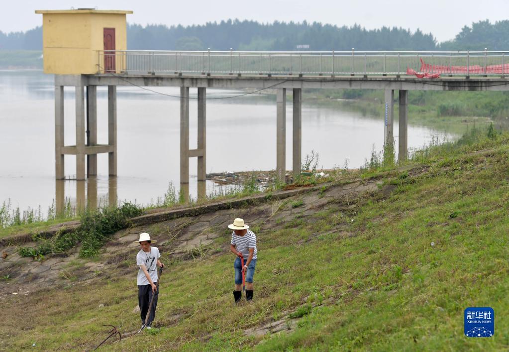 在江西省南昌市南昌縣蔣巷鎮贛江大堤,工作人員沿堤壩巡查排險(2021年5月25日攝)。新華社記者 彭昭之 攝