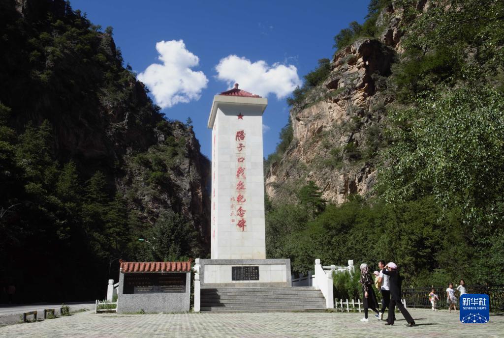 游客在臘子口戰役舊址參觀臘子口戰役紀念碑(2019年8月15日攝)。新華社記者 羅曉光 攝