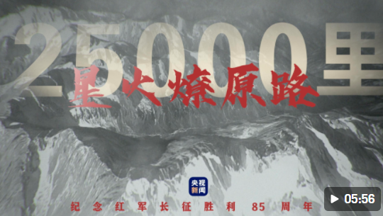 點擊圖片觀看視頻 長征到底有多艱辛 平均每300米就有一名紅軍犧牲 紅軍將士同敵人 進行了600余次戰役戰斗 跨越近百條江河 攀越40余座高山險峰 其中海拔4000米以上的雪山 就有20余座…… 舍生忘死的紅軍將士靠什么 靠的是理想信念 誰是共產黨人的理想之根 信念之源 人民 一切為了人民 是中國共產黨的立黨“初心” 走好今天的長征路 必須把人民放在心中最高位置 每一代人有每一代人的長征路 每一代人要走好自己的長征路 今天 我們這一代人的長征 就是要實現“兩個一百年”奮斗目標 實現中華民族偉大復興的中國夢 我們應該抱有必勝的信念 困難再大 想想紅軍長征 走好新時代長征路 看我們! ——紀念紅軍長征勝利85周年—— 總監制|錢蔚 監制|馬麗君 策劃|翟樹杰 編導|郭志德 剪輯|郭志德 視覺|郭志德 統籌|楊波 |