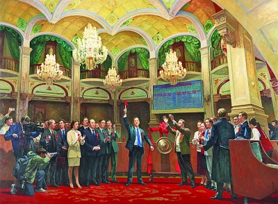 《開市祥鑼》(油畫) 章曉明 1.愛國情懷 茍利國家生死以,豈因禍福避趨之。優秀的企業家,必然把企業發展同國家繁榮、民族興盛、人民幸福緊密結合在一起,主動為國擔當、為國分憂。 在新中國成立之初發行勝利折實公債時主動認購650萬份;抗美援朝時捐獻七架半飛機和大量衣物;對申新紡織公司等榮氏企業實行公私合營……榮毅仁,為新中國工業振興作出重要貢獻。改革開放后,作為中國國際信托投資公司創始人,他廣泛開展中外經濟技術合作,將中信公司建成綜合性跨國企業集團。 在抗日戰爭后期興辦民族工業,向解放區低價出售大量軍用物資和醫療用品;策劃組織天津工商界抗美援朝反美愛國示威大游行,號召天津工商界以“國家興亡,匹夫有責”的精神,與中國共產黨同心同德……王光英,作為改革開放后第一個總部設在香港的中資企業的掌舵者,制定了“扎根香港,背靠祖國,面向世界,實事求是,講求實效”方針,完成了廣東磨刀門工程、江門橋工程等項目。 沿著歷史的脈絡回望,愛國,始終是我國優秀企業家的光榮傳統。