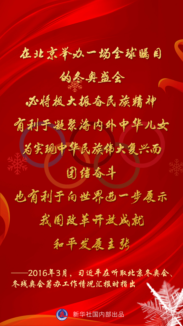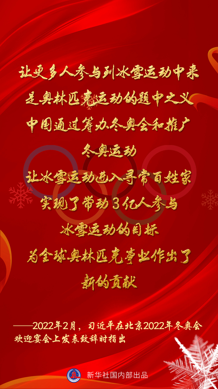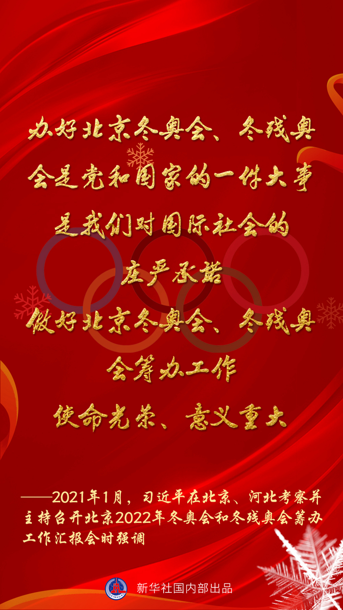 2022-02-22 17:42:00 來源:新華社 責任編輯:黃麗紅 作者:許可,張惠慧,黃垚北京第二十四屆冬季奧林匹克運動會閉幕式20日晚在國家體育場舉行。 “非常成功”“非常滿意”“非常安全舒適”“精彩絕倫”……對這場“偉大的盛會”,國際社會好評如潮。 “辦好北京冬奧會、冬殘奧會,是中國對國際社會的莊嚴承諾?!绷暯娇倳浾f。 言出必行,一諾千金。中國兌現“為世界奉獻一屆簡約、安全、精彩的奧運盛會”的承諾。 通過一組海報,讓我們一起回顧習近平總書記關于北京冬奧會的精彩論述,體會其中的字字千鈞。