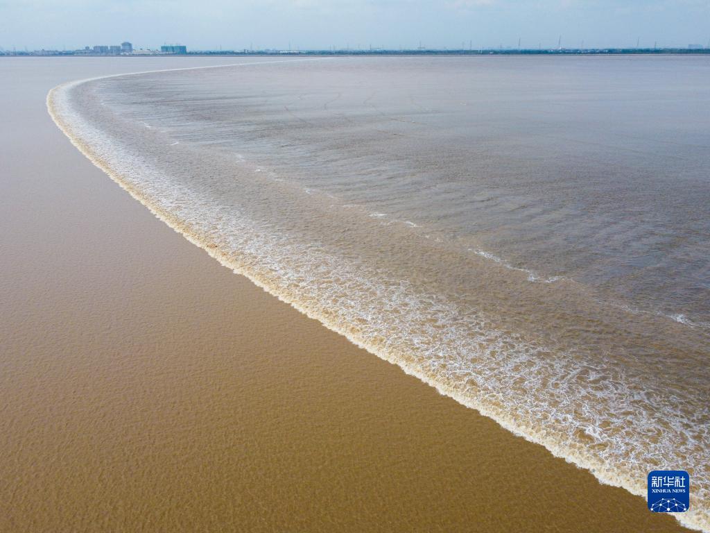 這是在杭州市錢塘新區拍攝的錢塘江一線潮奇觀(2020年10月5日攝,無人機照片)。新華社記者 江漢 攝