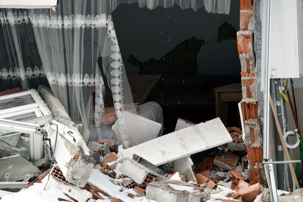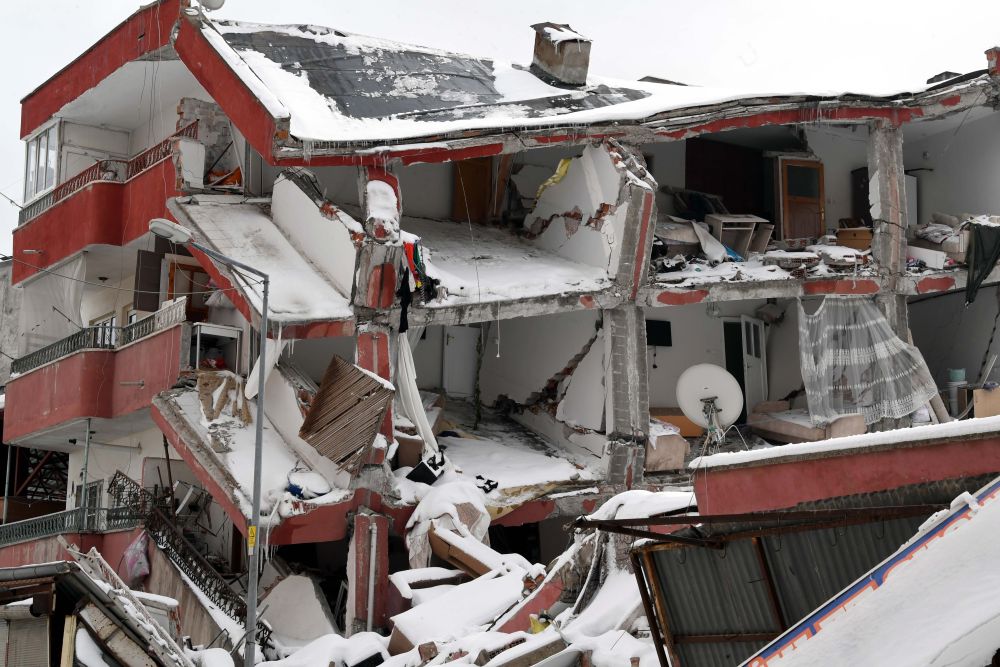 2月7日在埃爾比斯坦地區拍攝的地震中受損的建筑物。