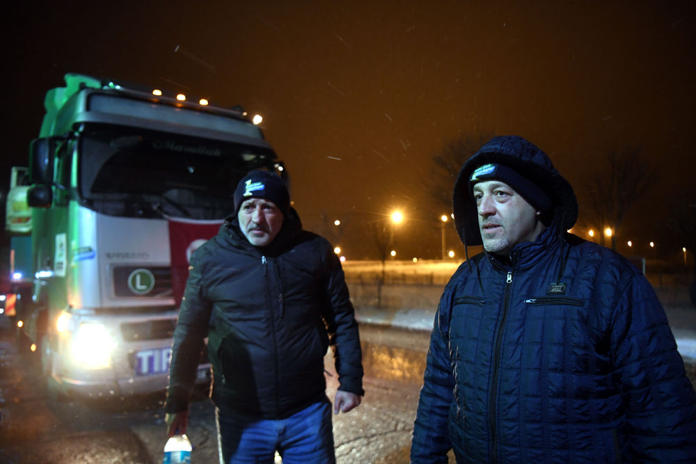 2月6日晚在伊斯坦布爾至安卡拉公路上拍攝的支援災區人員。
