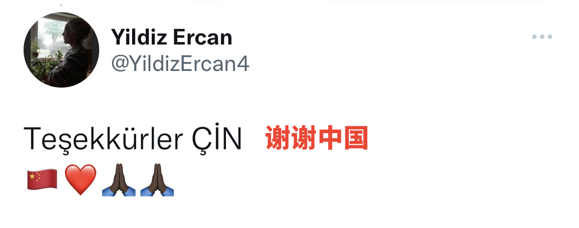 土耳其人民紛紛在社交媒體上表達對中國的感謝。