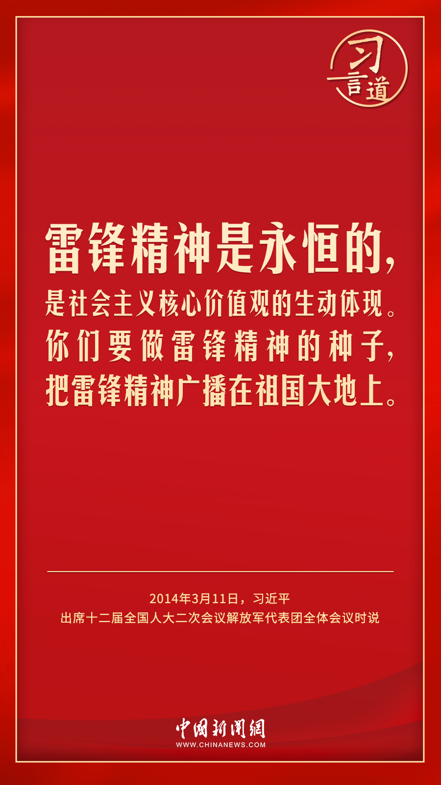 今年是毛澤東等老一輩革命家為雷鋒同志題詞60周年。黨的十八大以來,習近平總書記就學習弘揚雷鋒精神多次作出重要指示,他強調,無論時代如何變遷,雷鋒精神永不過時。