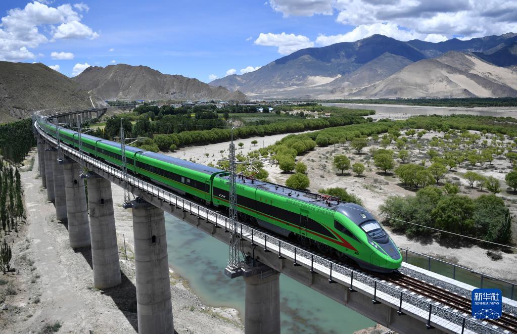 復興號列車行駛在西藏山南境內(2022年6月22日攝)。新華社記者 覺果 攝