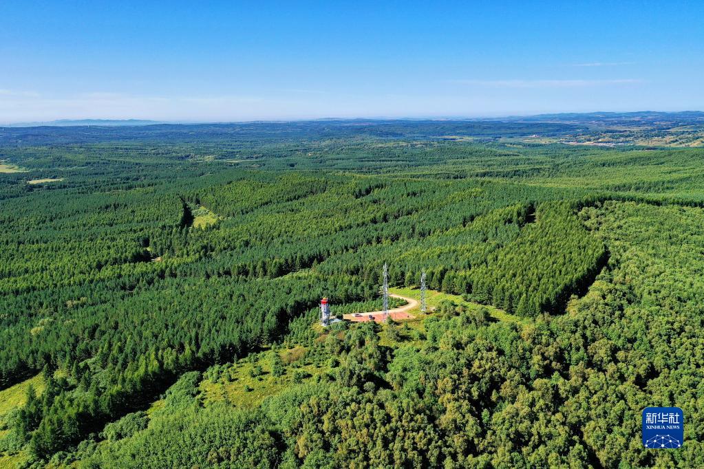 這是2021年8月23日拍攝的河北塞罕壩機械林場內的望海樓(無人機照片)。新華社記者 牟宇 攝