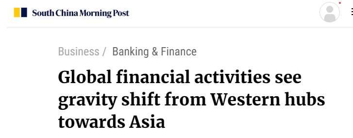 《南華早報》在21日的報道中曾提到,在過去十年中,全球金融活動的重心發生了變化,從傳統的北美和歐洲向亞洲轉移。大多數跡象表明,這種重新排序將進一步加速。