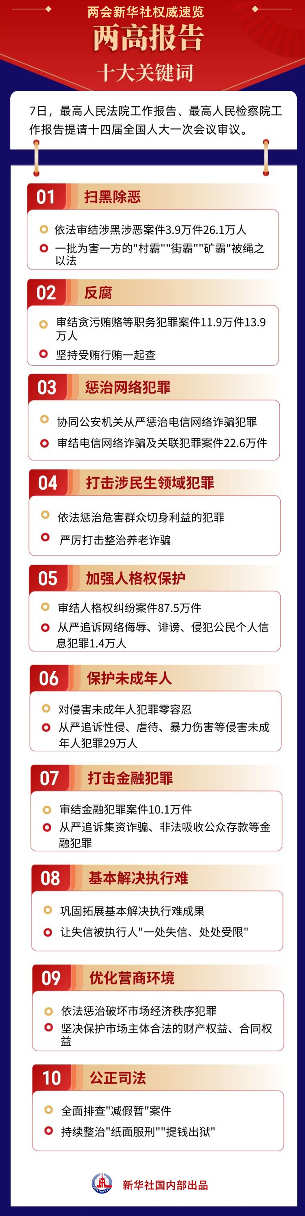 7日,最高人民法院工作報告、最高人民檢察院工作報告提請十四屆全國人大一次會議審議。